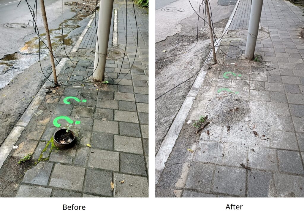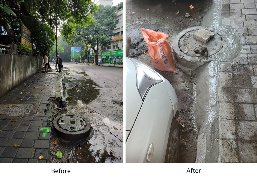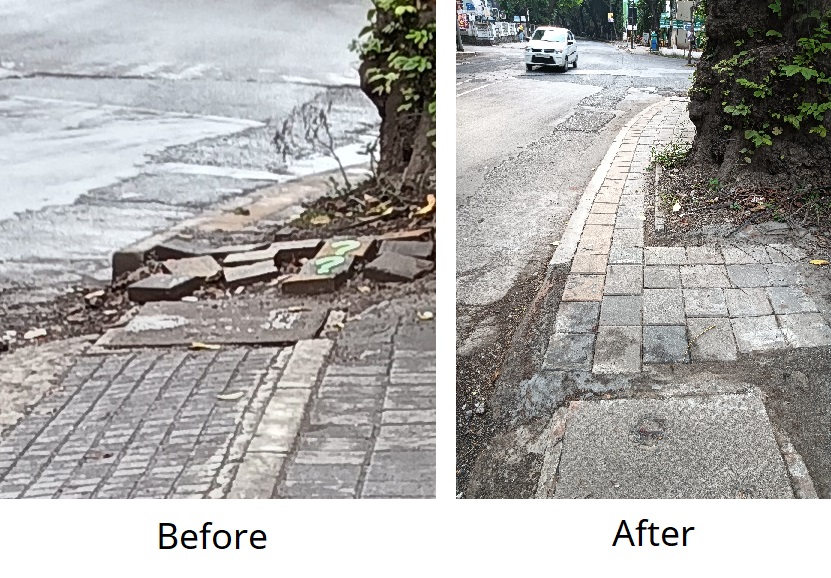 Some of us got together ~3 weeks ago to spot little issues that make our city unwalkable. Highlighting the issues with brightly painted question marks was fun! And of course we registered complaints then and there, using the PMC Care WhatsApp number (96899-00002).